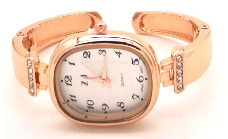 Fashion Watch Bangle Rose Gold Rectable with foil back Gems