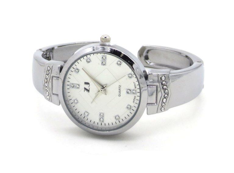 Fashion Bangle Watch with foil back gems White Gold Toned